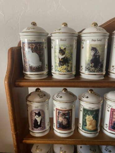 Complete Authentic 1995 Lenox Cats of Distinction Spice Jar Set with Rack